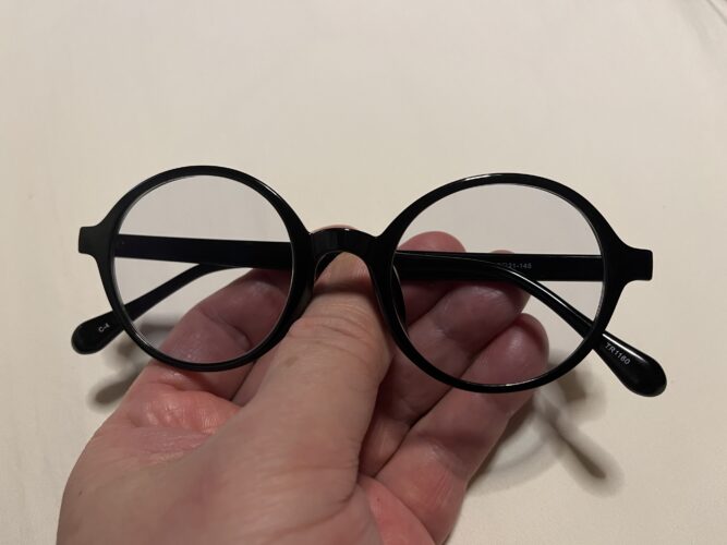 本当に自分の目に合っているのかを 調べるために 店内を 10分ほど 仮のレンズを 装着して ぶらぶら していたら、素敵な 丸いメガネを見つけてしまいました。 こちらです。