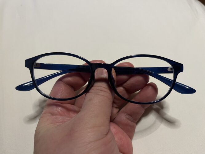 10分くらい 色んなメガネを 視させていただいた結果、 結局 最初に 教えていただいた2,900円のセール品にすることに。 オプションで3,300円の ブルーライトカットも 付けました。