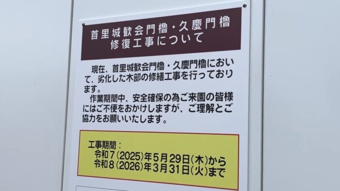 歓会門に貼られた工事期間の張り紙