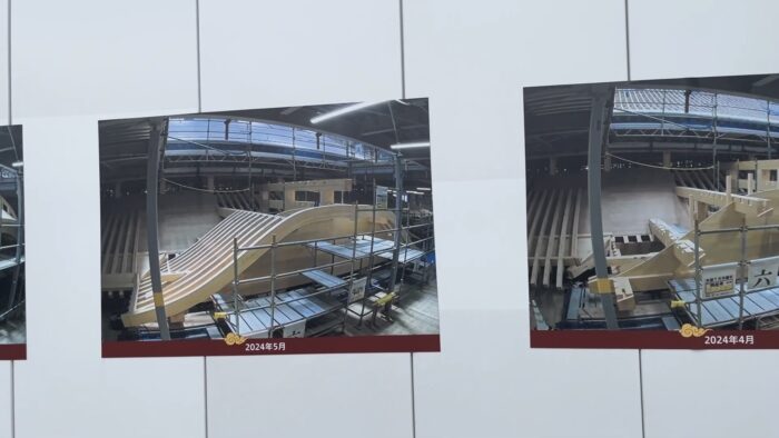 壁には 再建中の首里城の進行状況を説明する写真が ズラリと並んでおりました。